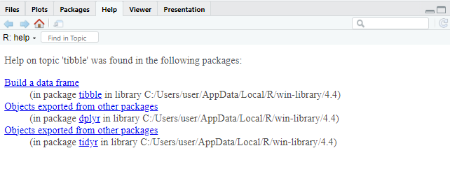Cuando accedemos al sitio web de CRAN y buscamos un paquete específico, encontraremos información útil como una breve descripción del paquete, el número de versión, la fecha de publicación, el nombre del autor, documentación asociada y enlaces de descarga específicos para cada sistema operativo.