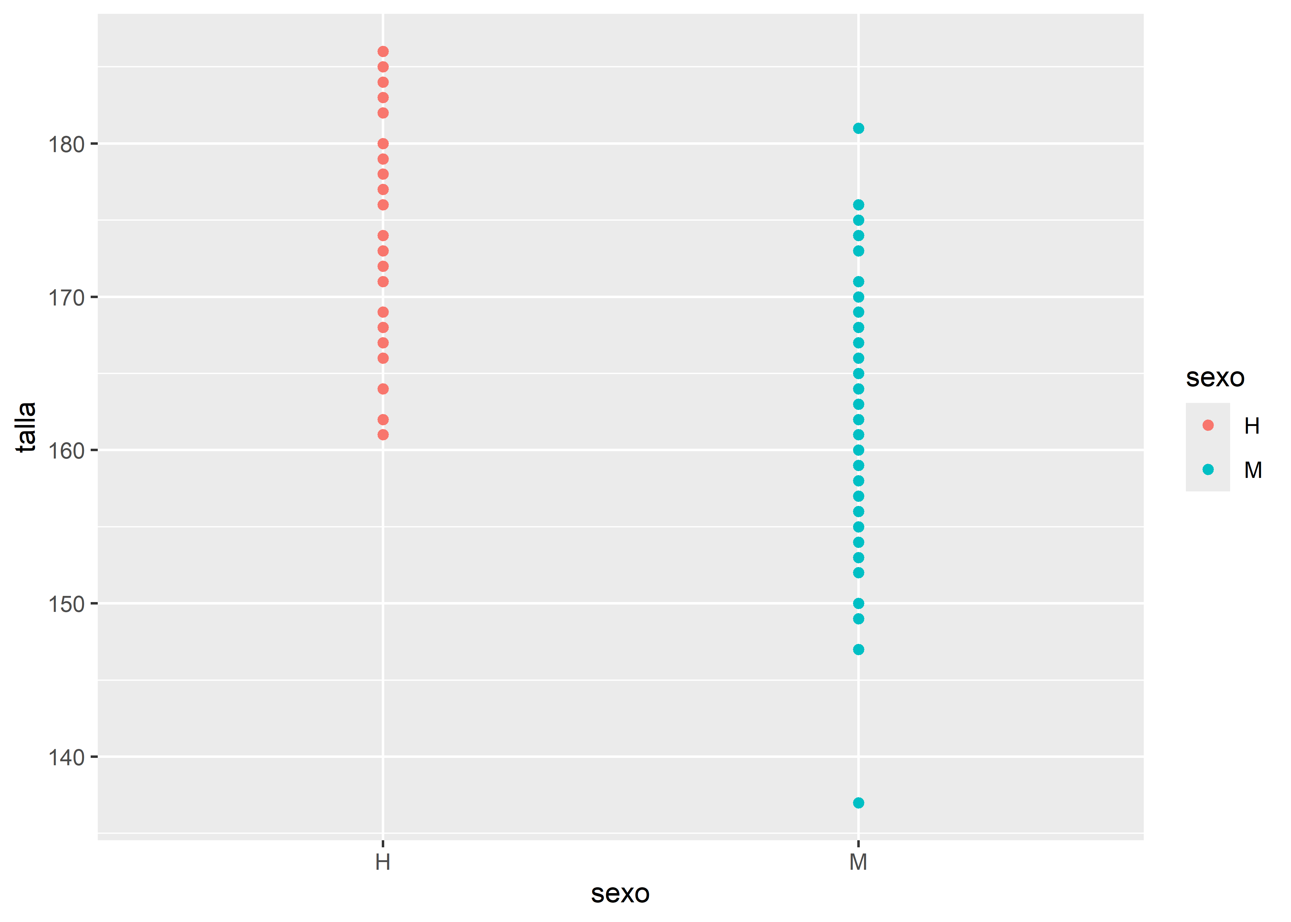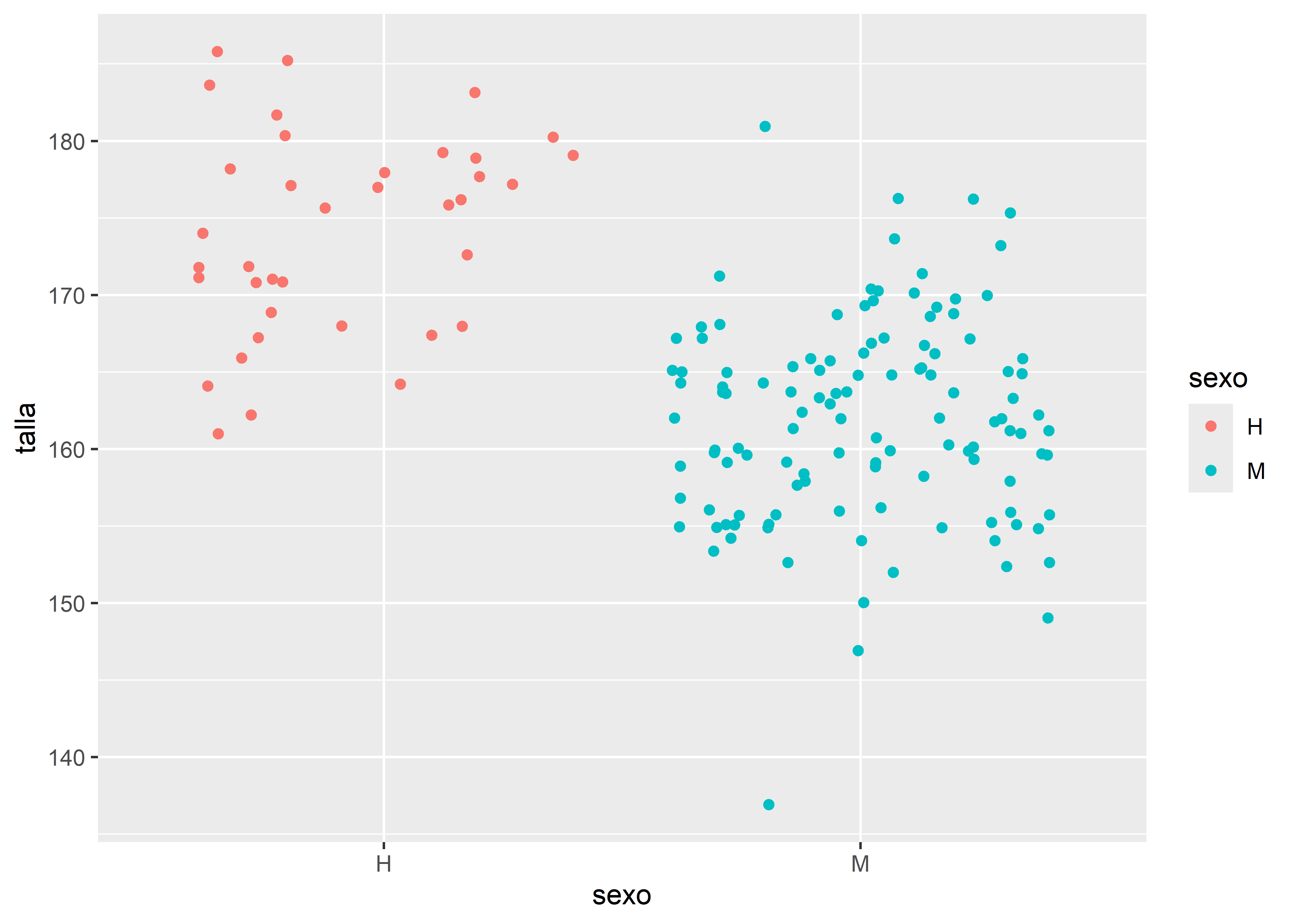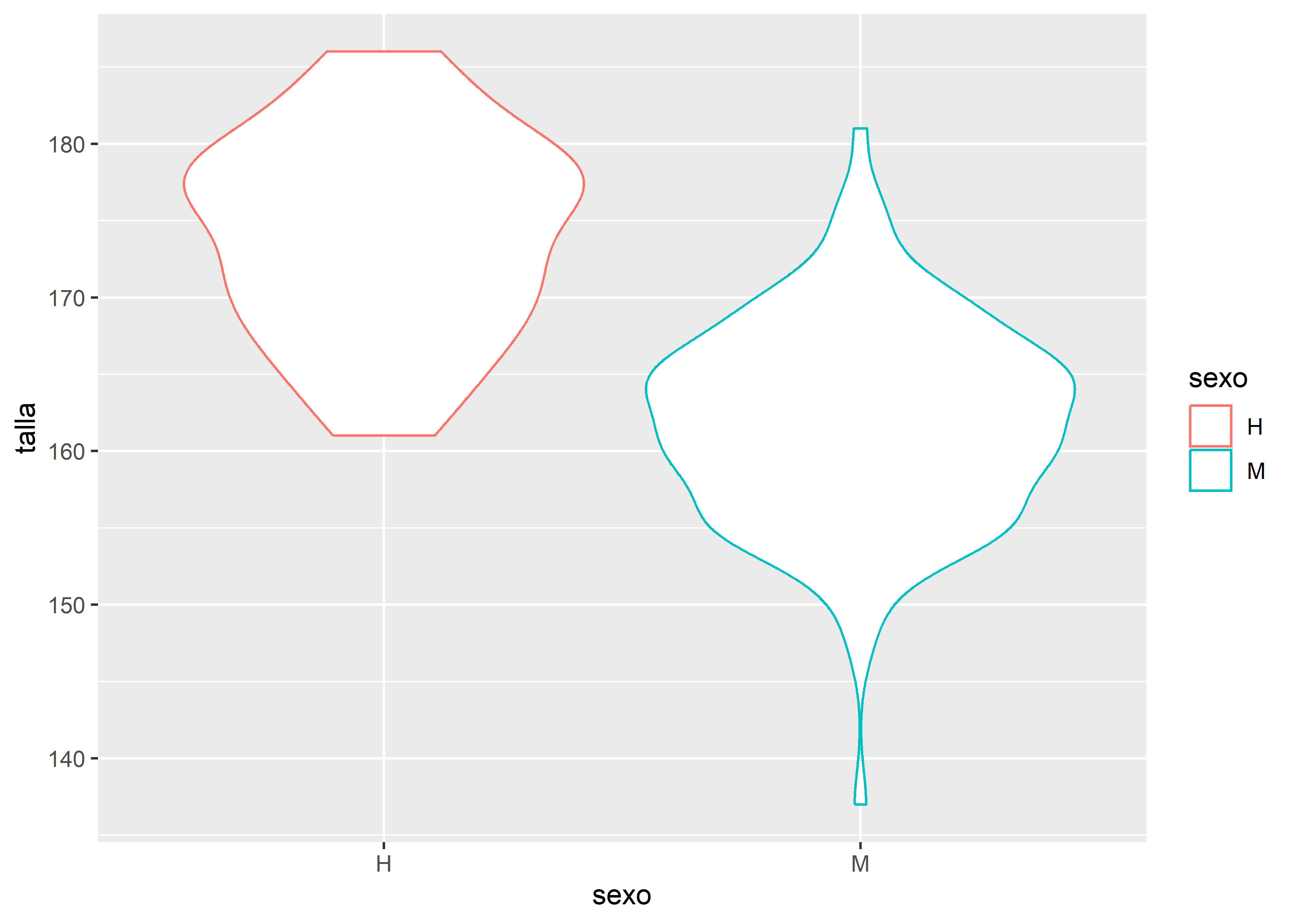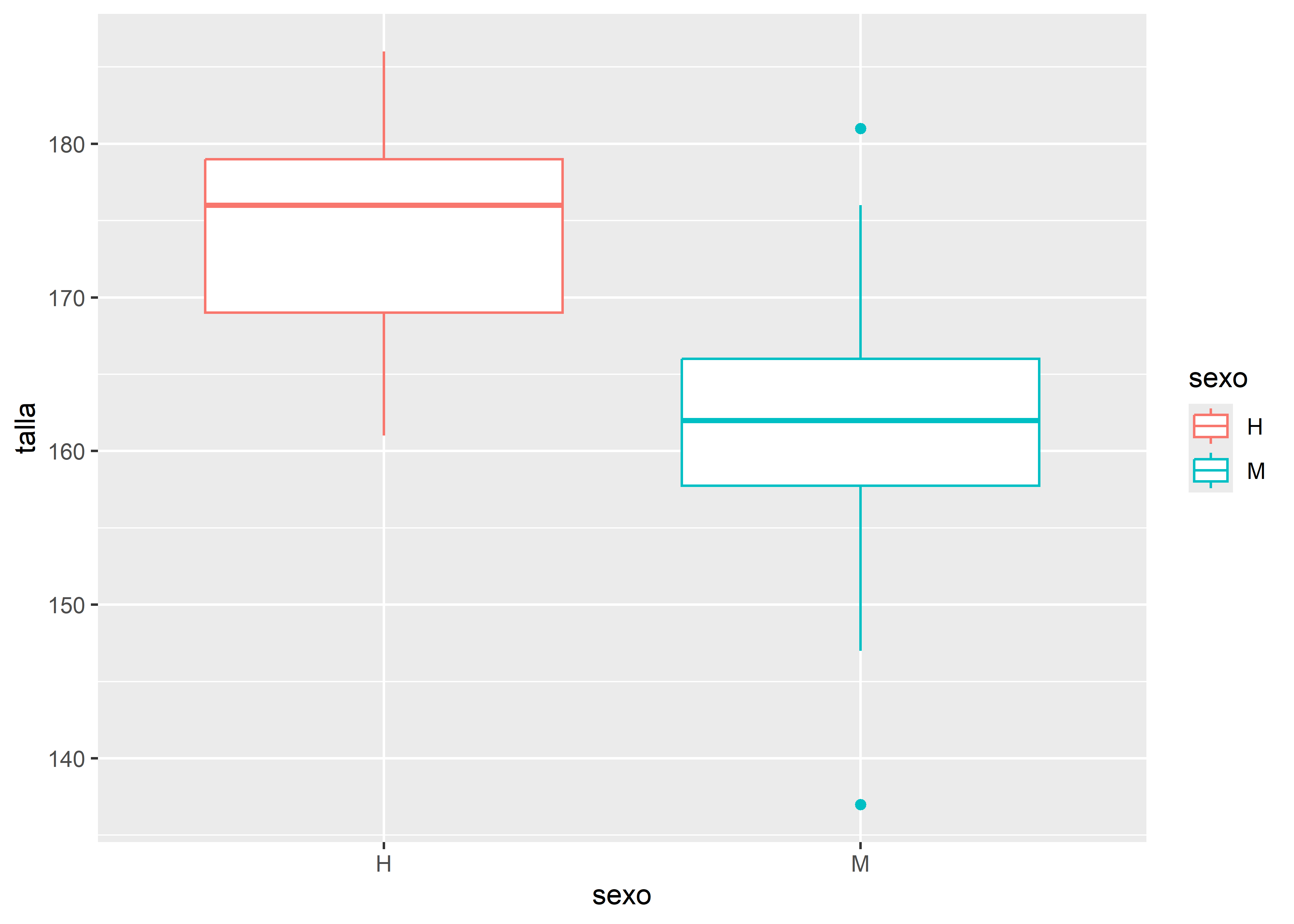 Por último, podemos personalizar los cortes del eje Y utilizando scale_y_continuous(). Por ejemplo, en el boxplot pintado en escala de grises, definimos que el eje Y comienza en 130cm y termina en 200cm, con cortes cada 5cm y etiquetas cada 10cm: