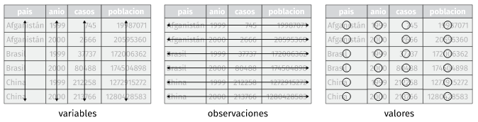 La palabra tidy se traduce como “ordenado”, y hace referencia a una estructura específica que deben cumplir los datos: