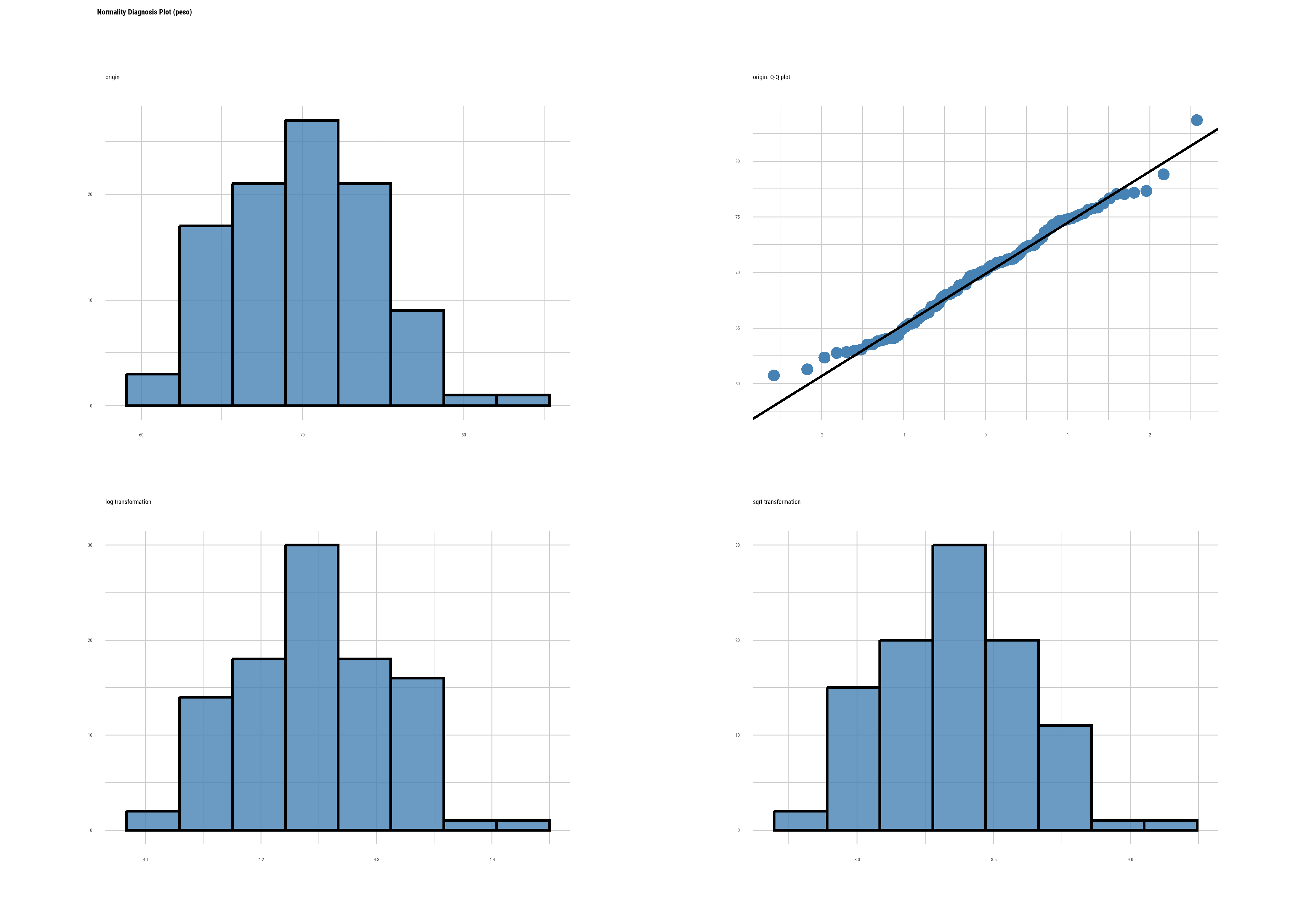 datos <- read_csv2("datos/datos_normalidad.csv")Evaluación gráfica de normalidad usando la función plot_normality() del paquete dlookr: